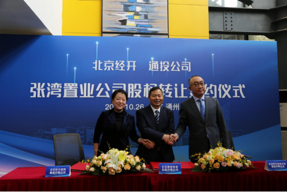 10月26日,通投公司與北京經(jīng)開投資開發(fā)股份有限公司就收購北京經(jīng)開張灣置業(yè)有限公司股權(quán)簽約儀式舉行。通州區(qū)副區(qū)長樓俊峰,北投集團(tuán)黨委副書記、總經(jīng)理、通投公司董事長陳衛(wèi)東,北京亦莊投資控股有限公司總經(jīng)理?xiàng)钗牧嫉阮I(lǐng)導(dǎo)出席。
