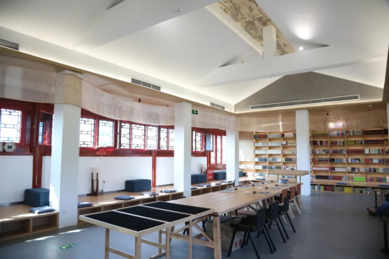 書(shū)店位于城市綠心森林公園北區(qū)驛站。室內(nèi)的空間設(shè)計(jì)上,用印有清代運(yùn)河全圖的曲線(xiàn)飄帶,打造出運(yùn)河流域地理造型,將“運(yùn)河文化”主題貫穿整個(gè)書(shū)店,讓“運(yùn)河概念”在室內(nèi)空間中“活”起來(lái),提升書(shū)店主題的場(chǎng)景感,重述古老運(yùn)河在新時(shí)代蘊(yùn)含的故事,為讀者提供更舒適的閱讀環(huán)境、更完善的閱讀服務(wù)、更全面的閱讀體驗(yàn)。